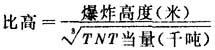 简称比高。空中核爆炸威力对地面作用相同的条件下,爆炸高度与爆炸当量立方根的比值。比高公式: