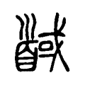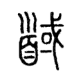 《說文新證》:「甲骨文『馘』字,為軍戰斷敵人之首,金文加聲符『或』作『馘』,《說文》或體承此;其後篆形从耳,或因軍制改取敵人之耳。」