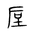 甲骨文、金文字形從厂,厂是山厓;聲(為裝厚酒的酒罈),表示音讀,兼取厚實的意思(由厚酒引申為厚實)。戰國文字字形上半訛變為「從石」,與《說文》古文相近,而隸書、楷書字形下半則訛變為「從子」。在六書中屬於形聲兼會意。