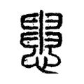患,忧虑。字形采用“心”作边旁,心上一竖贯穿“吅”,“吅”同时也作声旁。,这是古文写法的“患”字,采用有所省略的 “關”作声旁。