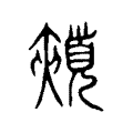 颊,面部的左右两侧。字形采用“页”作边旁,采用“夹”作声旁。,这是籀文写法的“颊”字。