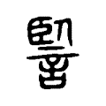 监,俯视。字形采用“臥”作边旁,用省略了“臽”的“”作声旁。譼,这是古文写法的“監”,采用“言”作边旁。