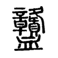 〔䀍〕字是上下结构,可拆字为“贛、皿”。