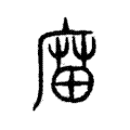 庙,尊敬祖先的样子。字形采用“广”作边旁,采用“朝”作声旁。,这是古文写法的“庙”字。