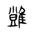 段玉裁注:「今難易字皆作此。」按:段玉裁、王筠等注均楷作「𪄿」。「𪄿」即「難」的古文。《字彙・鳥部》:「𪄿,古文難字。」