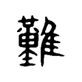 段玉裁注:「今難易字皆作此。」按:段玉裁、王筠等注均楷作「𪄿」。「𪄿」即「難」的古文。《字彙・鳥部》:「𪄿,古文難字。」