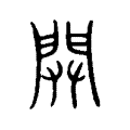 段玉裁注:「此上當依《匡謬正俗》、《玉篇》補古文闢三字。」按:西周至戰國「闢」字皆從「門」,從「廾」。像以兩手推開左右門扇之形。小篆的「闢」變成了形聲字。