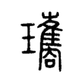 琼,红玉。字形采用“玉”作边旁,“敻”作声旁。“璚”,这是“瓊”的异体字,字形采用“矞”作边旁,写作“璚”。“瓗”, 这是“瓊”的异体字,字形采用“巂”作边旁,写作“瓗”。“琁”,这也是“瓊”的异体字,字形用省略了“方”的“旋”作边旁。
