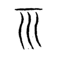 甲骨文三例,像運算縱橫布列的竹片。由於運算需要的竹片或多或少,原無定數。因此出現的竹片也就多寡不一,形呈多樣。戰國文字、篆文的形體一致,都像運算的竹片,其來有自。字經隸書,形變作、