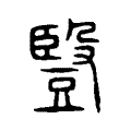此字始見於篆文,從臤、豆聲。從「臤」(ㄑㄧㄢ qiān),表示堅固的意思;「豆」表示音讀。在六書中屬於形聲。《說文》另收錄有從「殳」的籀文。隸書形體略有改變,楷書從篆文來。