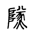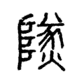 段玉裁改為「篆文𨽵省」,並注:「此為小篆,則知上為籀文矣。」又「注見火部『㷭』下。彼云『㷭,𤎩𠊱表也』,緫釋此二篆。此云『塞上亭守㷭火者』,謂邊塞之上守望㷭火之亭,故其字从𨺅,在阸隘之閒也。」