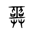 」。古文上體從工,下體從?,示二手捧玉,上體兩側上端像舞袖之形,下端從二口,以示歌唱。在六書中屬於會意附加實象。隸書、楷書承自篆文,而變易作二人而定體。