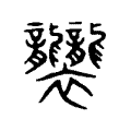 袭,衣襟居左的死者穿的内衣。字形采用“衣”作边旁,采用“龖”作声旁。,这是籀文写法的“袭”字,“龖”未加省略。