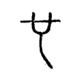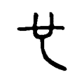 金文第二例,像男性生殖器。篆文承之,二豎筆穿透上端,分向左右傾側。隸書左筆下端向右側彎曲伸出;右臂向上縮短。楷書承之,下體末端上挑而定體。有學者以為「也」是「匜」字的初文,是一種盥洗用具(《細說漢字》,P.80),可備一說。在六書中屬於象形。