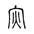 1.會意。甲骨文字形,象火焚屋的形狀。小篆從川,表水;從火。水火都是災禍之源。本義:火災。