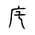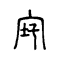 (ancient form of 宅) wall of a building, a house, to keep in the house, thriving; flourishing, blazing, (ancient form of 度) legal system; laws and institutions, to think; to consider; to ponder; to contemplate