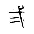 之外,其形都一致。篆文之形,特別強調二橫長短相同,隸書就不這麼要求,成了上橫短、下橫長;楷書承接隸書,據以為形。以上諸形,都由兩個「一」字構成,以示其義。在六書中屬於同文會意。戰國文字戈、弋二形常相混,證以《說文》古文