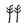 two hands; KangXi radical 55 Radikal Nr. 55 = vereinende Hände, zusammen, gemeinsam (Variante: 廿 ) tenir des deux mains