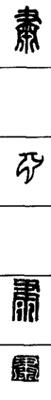 从上到下依次是小篆、甲骨文、金文、古玺及战国文字、缪篆及汉代文字、鸟虫篆。