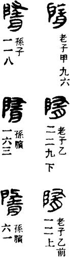 馬王堆帛書《六十四卦》有隋卦,六三:“係丈夫,失小子,隋有求,得。”九四:“隋有獲,貞凶。”隋通行本《易》作隨。又馬王堆帛書《戰國縱横家書·須賈説穰侯章》:“宋、中山數伐而數割,而國隋以亡。”《戰國策·魏策三》:“宋、中山數伐數割,而隨以亡。”又馬王堆帛書《老子·道經》甲、乙本:“……先、後之相隋,恒也。”乙本:“隋而不見其後,迎而不見其首。”“故物或行或隋……”三例隋字通行本皆作隨。按《墨子·耕柱》“隋侯之珠”,《文選》李斯《上秦始皇書》李善注引隋作隨。