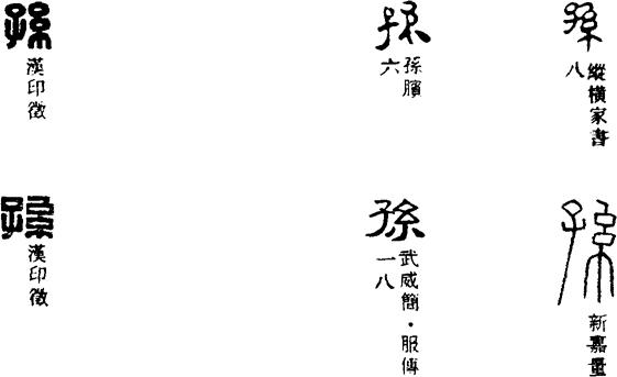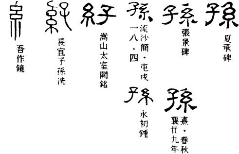 sūn 《广韵》:尔雅释亲曰,凡子之子为孙,孙之子为曾孙……,又姓。 思浑切 臻合一平魂心