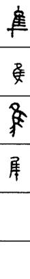 从上到下依次是小篆、甲骨文、金文、古玺及战国文字、缪篆及汉代文字、鸟虫篆。