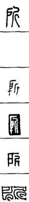 从上到下依次是小篆、甲骨文、金文、古玺及战国文字、缪篆及汉代文字、鸟虫篆。