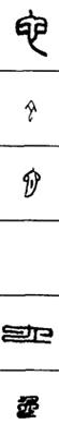 从上到下依次是小篆、甲骨文、金文、古玺及战国文字、缪篆及汉代文字、鸟虫篆。