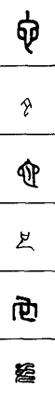 从上到下依次是小篆、甲骨文、金文、古玺及战国文字、缪篆及汉代文字、鸟虫篆。