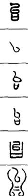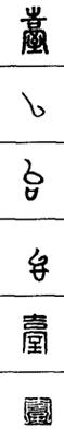 从上到下依次是小篆、甲骨文、金文、古玺及战国文字、缪篆及汉代文字、鸟虫篆。