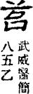 ,8画。苔藓植物类。生于潮湿之处,根茎叶区别不明显,也叫地衣、水衣