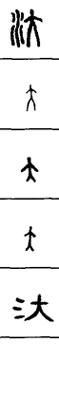 从上到下依次是小篆、甲骨文、金文、古玺及战国文字、缪篆及汉代文字、鸟虫篆。
