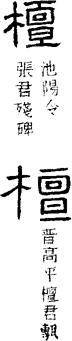 ,17画。树名,有黄檀、紫檀、青檀等多种。木质坚硬,用来制造家具、农具、器物等