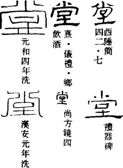 〈辨〉堂字形符从土,本为坛或屋基;引申指堂屋。