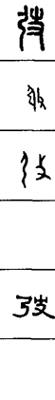 从上到下依次是小篆、甲骨文、金文、古玺及战国文字、缪篆及汉代文字、鸟虫篆。