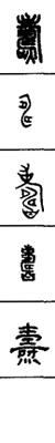 从上到下依次是小篆、甲骨文、金文、古玺及战国文字、缪篆及汉代文字、鸟虫篆。