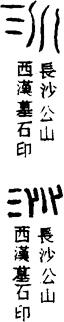 从上到下依次是小篆、甲骨文、金文、古玺及战国文字、缪篆及汉代文字、鸟虫篆。