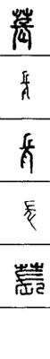 从上到下依次是小篆、甲骨文、金文、古玺及战国文字、缪篆及汉代文字、鸟虫篆。