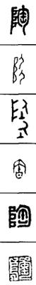 从上到下依次是小篆、甲骨文、金文、古玺及战国文字、缪篆及汉代文字、鸟虫篆。