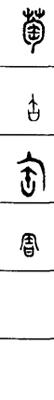 从上到下依次是小篆、甲骨文、金文、古玺及战国文字、缪篆及汉代文字、鸟虫篆。
