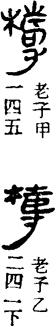 馬王堆帛書《老子》甲本《道經》:“善數者不以檮恛(策)。”乙本同,通行本作“善數,不用籌策”。《説文》:“