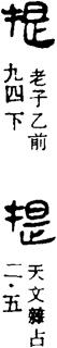 ㈠ tí ①垂手拿着。《庄子·养生主》:“提刀而立。”②向上提,引物向上。《诗经·大雅·抑》:“匪面命之,言提其耳。”今成语有“耳提面命”、“提纲挈领”。引申为提拔。《北史·魏收传》:“提奖后辈,以名行为先。”(名行:名望、德行。)③携带。《墨子·兼爱下》:“提挈妻子而寄托之。”引申为率领。司马迁《报任安书》:“且李陵提步卒不满五千。”④举出,提出。《淮南子·要略》:“提名责实。”韩愈《进学解》:“记事者必提其要。”⑤鼓名。《周礼·夏官·大司马》:“师帅执提。”