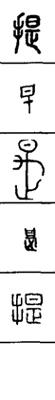 从上到下依次是小篆、甲骨文、金文、古玺及战国文字、缪篆及汉代文字、鸟虫篆。