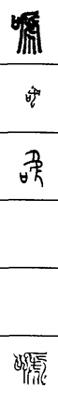 从上到下依次是小篆、甲骨文、金文、古玺及战国文字、缪篆及汉代文字、鸟虫篆。