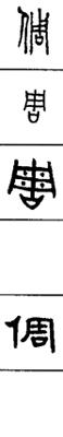 从上到下依次是小篆、甲骨文、金文、古玺及战国文字、缪篆及汉代文字、鸟虫篆。