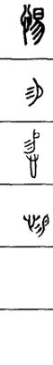 从上到下依次是小篆、甲骨文、金文、古玺及战国文字、缪篆及汉代文字、鸟虫篆。