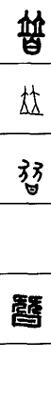 从上到下依次是小篆、甲骨文、金文、古玺及战国文字、缪篆及汉代文字、鸟虫篆。