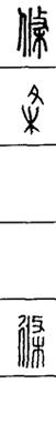 从上到下依次是小篆、甲骨文、金文、古玺及战国文字、缪篆及汉代文字、鸟虫篆。