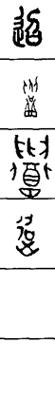 从上到下依次是小篆、甲骨文、金文、古玺及战国文字、缪篆及汉代文字、鸟虫篆。