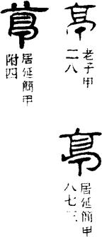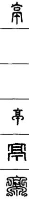 从上到下依次是小篆、甲骨文、金文、古玺及战国文字、缪篆及汉代文字、鸟虫篆。